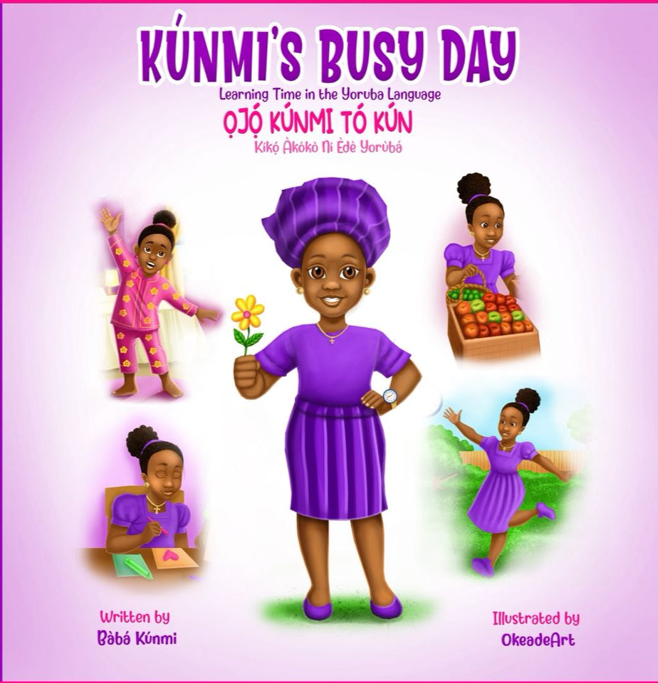A delightful journey through time, language, and culture that makes learning both fun and meaningful. Follow Kúnmi through a fun and colorful day as she learns how to tell time in both English and Yorùbá.